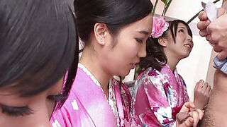 Fantastic Asian Haruka Sanada gives a deepthroat oral pleasure to a nasty group of guys