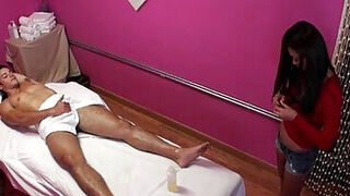 Asian masseuse tugging dong